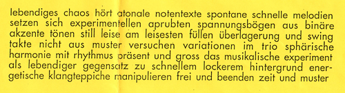 xxmusik haben dank innovativem umgang mit konzeptimprovisation verschiedentlich von sich reden gemacht und bieten dem offenen ohr durch aussergewöhnliche ideen und besetzungen immer wieder neue zugänge zu musikalischen aspekten.